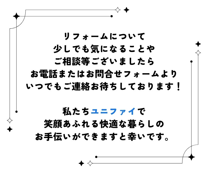 但し、浴室・キッチンなどの工事個所によっては、一時的にご不便をおかけする場合もございます。